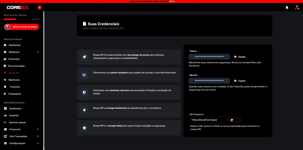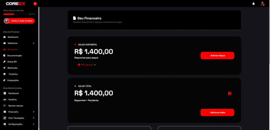 O Coreex foi desenvolvido com foco em segurança, flexibilidade e autonomia total, garantindo que sua operação de pagamentos funcione com estabilidade, velocidade e proteção.